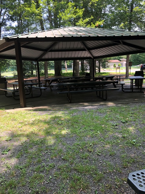 picnic pavilion with picnic tables & charcoal grilles